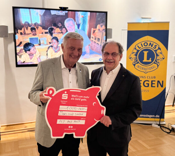 Der Lions Club Siegen hat mit einer Spende über 1.000 EUR die Stiftung „Reiner Meutsch – Fly and Help“ unterstützt. Die Stiftung errichtet weltweit Schulen für Kinder und Jugendliche, um ihnen durch Bildung eine bessere Zukunft zu ermöglichen.